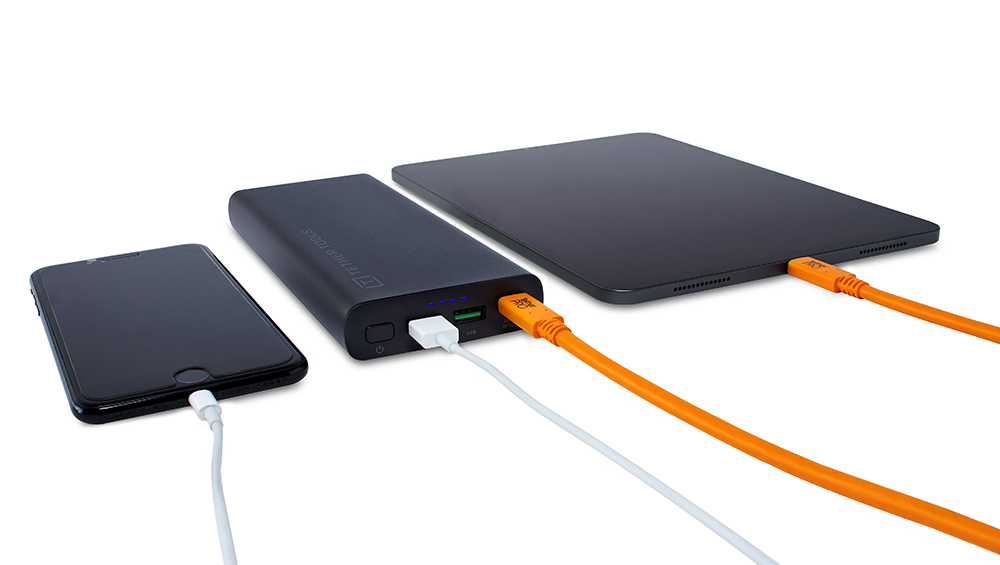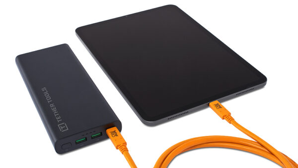 La Batería portátil USB-C ONsite USB-C 100W PD 26,800 mAh también puede cargar tres dispositivos simultáneamente, con 1 puerto USB-C y 2 puertos USB-A para alimentar tu laptop, tableta o teléfono, así como los sistemas de alimentación de cámaras Tether Tools ONsite Relay C o Relay A. Para sesiones fotográficas con conexión, puedes alimentar tu computadora y cámara con una sola batería.